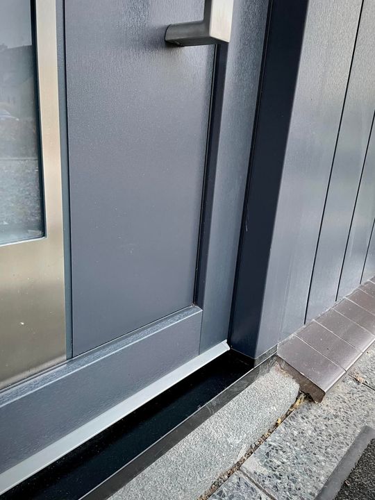 De kunststof kozijnen zijn voorzien van houtnerf folie in de kleur antracietgrijs RAL 7016.